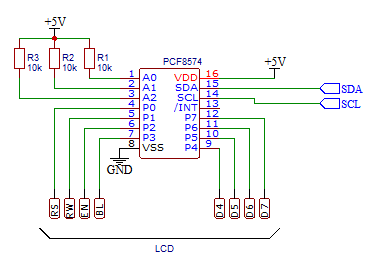 | PCF8574 | bit 7 | bit 6 | bit 5 | bit 4 | bit 3 | bit 2 | bit 1 | bit 0 |