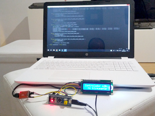 ( 3 / 3426 )A la hora de controlador un display LCD mediante el conocido adaptador I2C la gran mayoría de ejemplos disponibles por ahí implementan los estados de espera necesarios mediante retardos explícitos ("delays"). Dichas implementaciones están bien como prueba de concepto, pero no son deseables en entornos multitarea donde no podemos desperdiciar ciclos sólo esperando. En entornos reales se precisa de implementaciones no bloqueantes que hagan uso de timers e interrupciones.