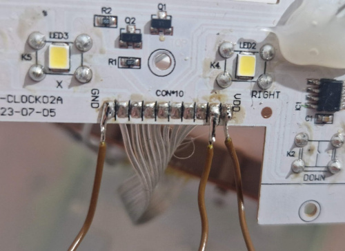 El cable plano que une la placa principal con la placa de botones, leds y el chip de audio es un cable plano de 10 hilos que sólo tiene los dos extremos serigrafiados como "vdd" y "gnd".