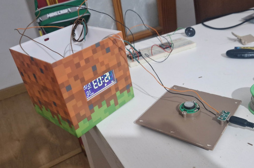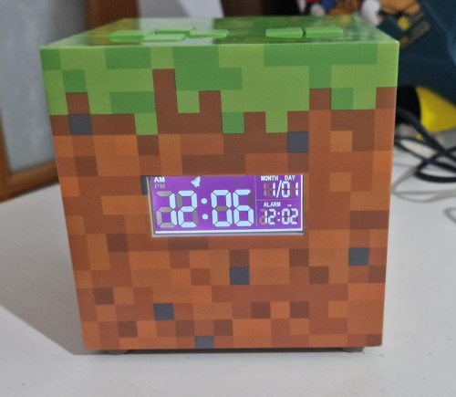 Mi hijo recibió por su cumpleaños un despertador con temática Minecraft que le gustó mucho salvo por el sonido que tenía como despertador, que estaba prefijado y era una supuesta grabación "inspirada" en el juego.