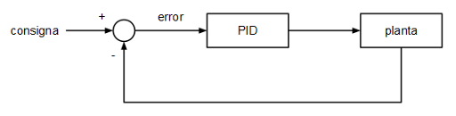 La señal que entra al controlador es la medida que queremos que alcance la planta (llamada "consigna" en teoría del control) menos la medida de salida de la planta o, lo que es lo mismo, el error. El objetivo del controlador será siempre minimizar el valor absoluto del error (que tienda a cero) actuando sobre la entrada de la planta.