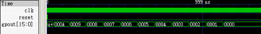 Si observamos el puerto de salida GPOut y alejamos el zoom se puede ver cómo el procesador ha ejecutado el programa correctamente (cuenta descendente desde 10 hasta 0 y se detiene).