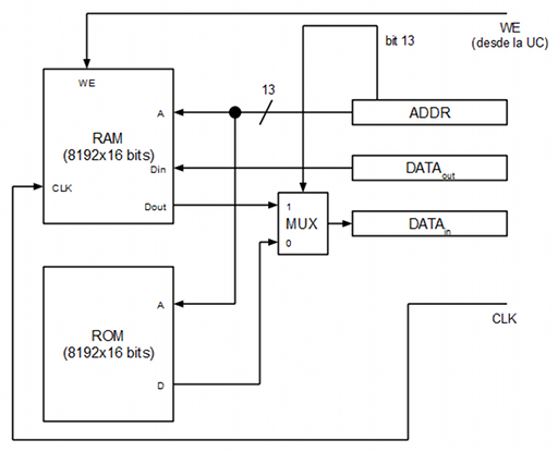 La unidad de memoria viene con una RAM y una ROM. Una memoria ROM no requiere secuencialidad y puede ser implementada como una LUT de forma combinatoria: