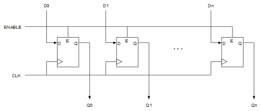 Un registro no es más que una colección de biestables D en paralelo, uno por cada bit.