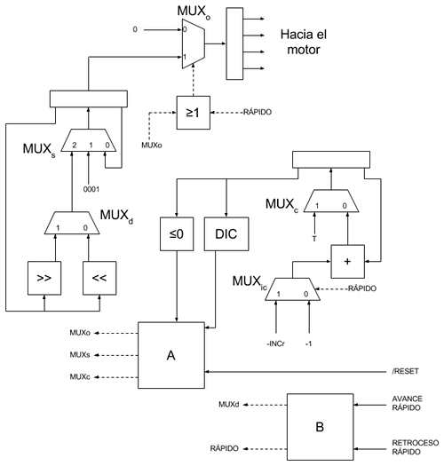 El resto de la implementación consiste en codificar lo registros y los multiplexores: