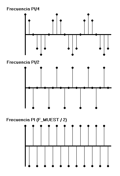 muestras, es decir, una frecuencia de PI/2, la mitad de la
