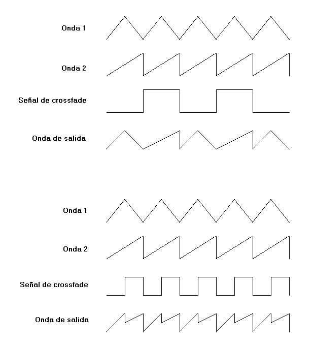 En el listado 3 tenemos un código que genera dos señales de onda cuadrada de frecuencias ligeramente diferentes (F_SENIAL y (F_SENIAL · MULT)) y que permite mezclarlas tal cual, o mezclarlas haciendo que la segunda de ellas se sincronice con la primera.