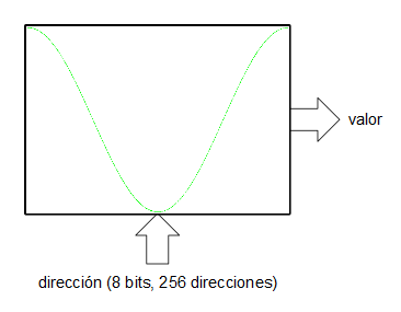 Existe, sin embargo, una forma bastante ingeniosa para la síntesis directa de señales digitales sin necesidad del uso de PLLs ni de divisores de frecuencia: los acumuladores de fase. Un acumulador de fase es una de las partes que integran un oscilador digital basado en tabla de ondas. Imaginemos que queremos generar una onda senoidal mediante una tabla de ondas.