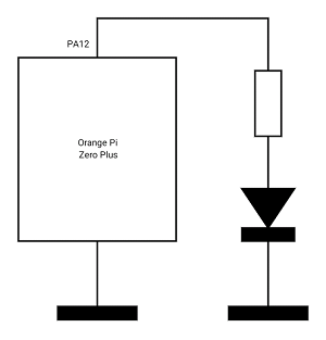 Para hacer la prueba de concepto bare metal bastará con hacer un pequeño programa que haga de SPL. En este caso se ha optado por hacer el típico blinker que actúe sobre una de las salidas GPIO de la placa a la que conectaremos un led para comprobar que el invento funciona. Usaremos la salida GPIO12 (se podría usar cualquier otra) que se corresponde con el pin 3 del puerto de expansión de la Orange Pi Zero Plus (http://linux-sunxi.org/Orange_Pi_Zero_Plus#Expansion_Port).