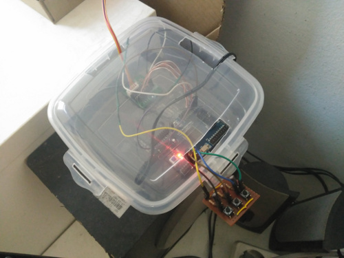 Para rizar el rizo y aprovechando que tenía por aquí un CPLD chico de 64 macroceldas (el EPM3064A de Altera, unos 6 ¤ por aliexpress) me aventuré a colocar unas luces en la parte "nocturna" del disco giratorio. Una pila de botón de tipo CR2032 es más que suficiente para alimentar el CPLD y los 5 leds que se usan para simular las estrellas.