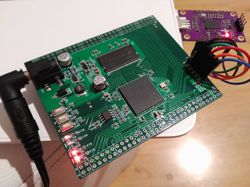 Como placa de ejemplo he usado una placa recién adquirida por AliExpress, en concreto un clon de la QMTech XC6SLX16 SDRAM Core Board, una placa que incluye una FPGA Spartan 6 de Xilinx, un oscilador a 50 MHz, una SDRAM de 32 Mb, una flash SPI de 8 Mbit (para almacenar la configuración no volátil de la FPGA), varios leds y múltiples puestos de entrada/salida. El clon que se puede adquirir por AliExpress es exactamente igual que la placa original. Me costó unos 19¤ con los gastos de envío incluidos.