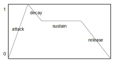 Si se define un nivel de sostenido igual a 0, tenemos una envolvente de tipo AD (Attack-Decay).