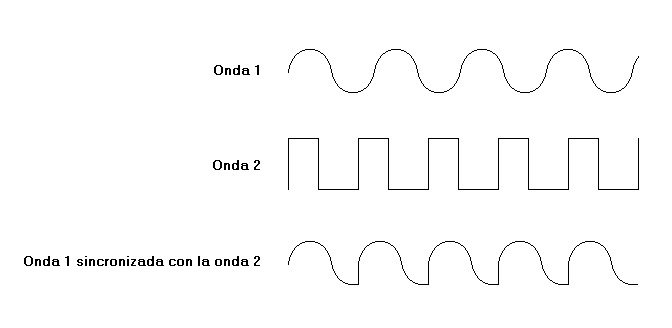 La sincronización de onda consiste en dotar al oscilador de una entrada que, al ser activada, reinicia la fase de la onda a 0 (esta entrada se suele denominar sync). Una forma muy extendida es la de utilizar como señal sync la salida de otro oscilador a frecuencia audible y desplazada con respecto a la frecuencia del primer oscilador ([osc A] --sync--> [osc B]). De esta forma se generan componentes frecuenciales altas al introducir la sincronización saltos bruscos en la señal del oscilador sincronizado.