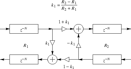 Si analizamos esta función de dispersión tenemos: ya = xa · (1 + k) - (xb · k) y, por otro lado, yb = xb · (1 - k) + (xa · k) (siendo xa el dato que sale de la sección de la izquierda de A, xb el dato que sale de la sección de la derecha de B, ya el dato que entra en la sección de la derecha de A e yb el dato que entra en la sección de la izquierda de B). Como vemos se trata de una función del tipo (ya, yb) = f(xa, xb). Para aplicar esta ecuación al cambio de diámetro en un instrumento de viento el valor de la constante k estará en función de la diferencia de diámetro entre dos secciones adyacentes del tubo. k = (R2 - R1) / (R2 + R1), siendo R1 la impedancia de la onda en la parte izquierda y R2 la impedancia de la onda en la sección de la derecha. Para una sección de tubo cualquiera podemos aproximar su impedancia como la inversa de su radio (R = 1 / radio). Esto es sólo una aproximación burda, para afianzar conocimientos, el lector interesado puede acudir a la web de Julius O. Smith III.